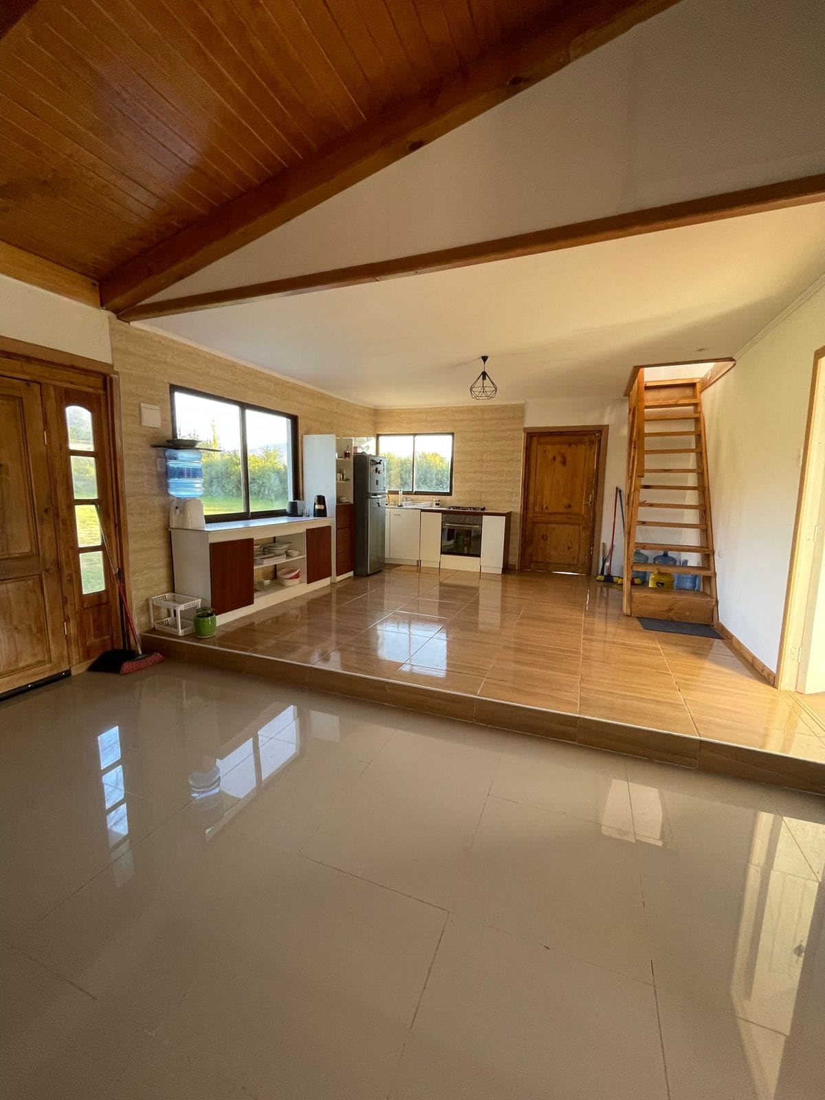 La casa cuenta con un gran espacio integrado de living, comedor y cocina, amplio y luminoso, ideal para la vida familiar.