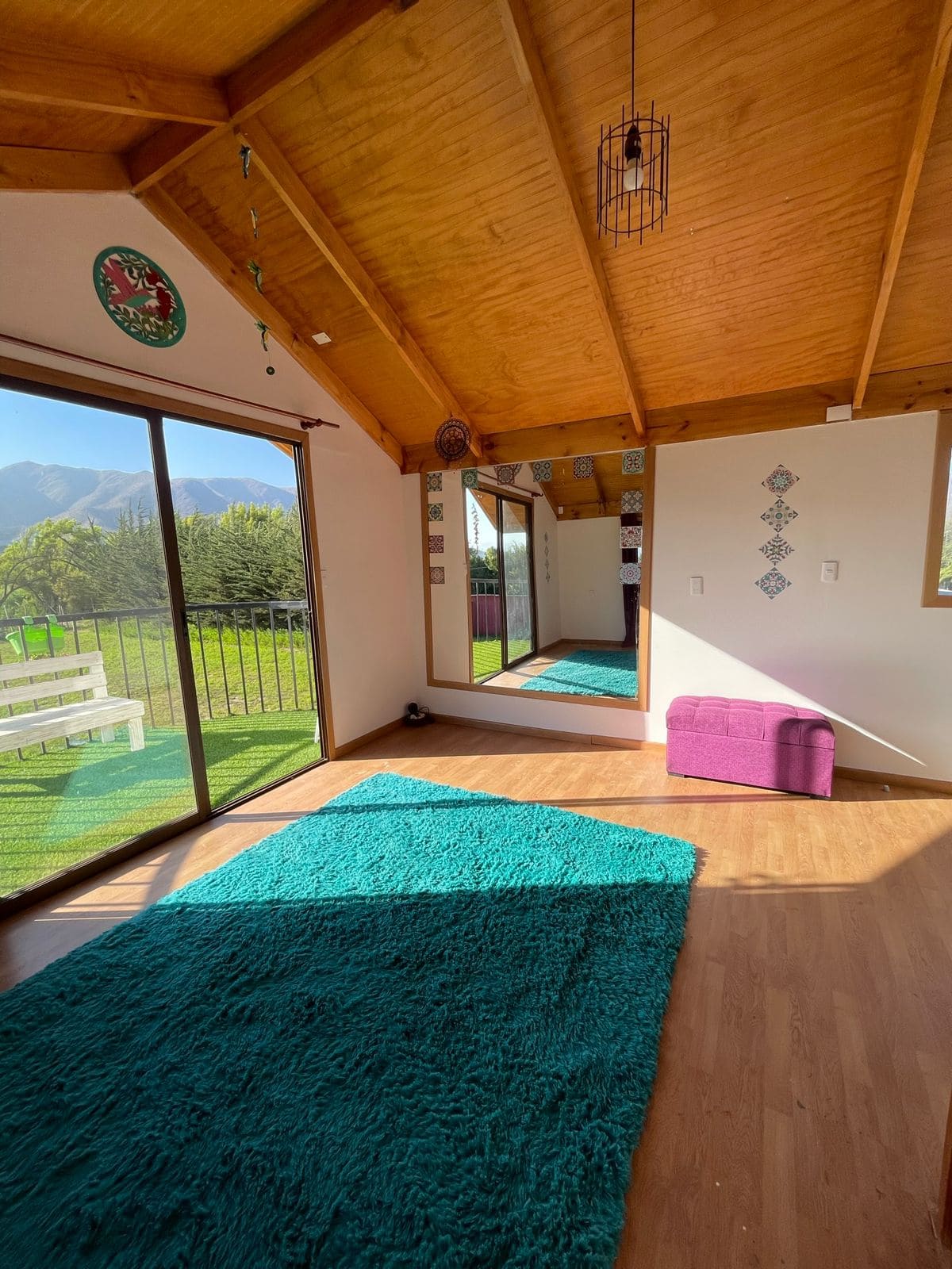 Se emplaza en un terreno de 1 hectárea, con gran parte del terreno con pasto 🌿 y deslindes rodeados de árboles grandes, lo que entrega excelente privacidad y un entorno natural muy agradable.