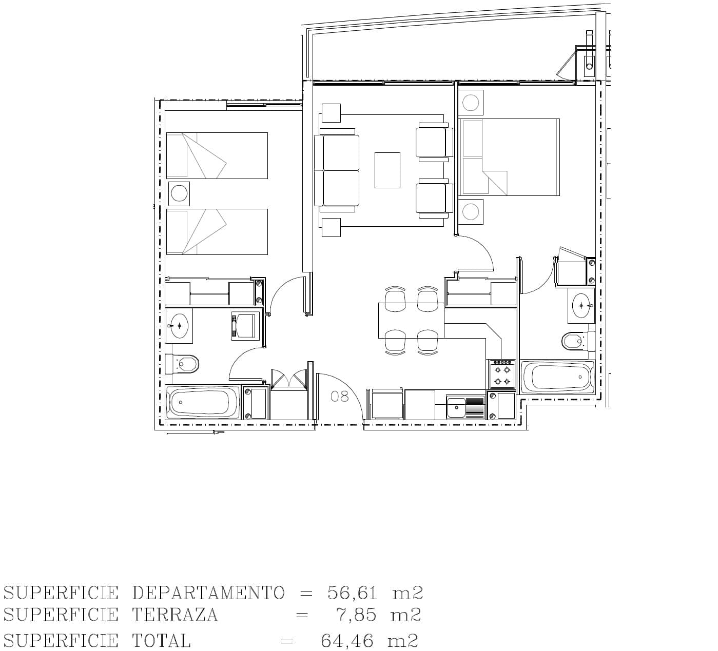 - 2 dormitorios, 2 baños (modelo Mariposa)