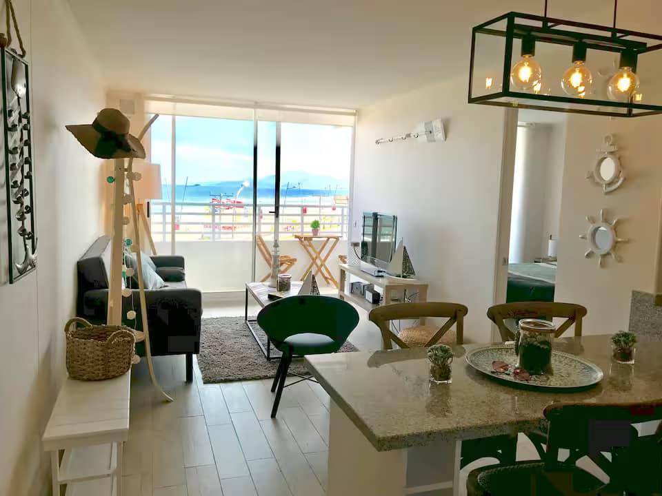 Vive frente al mar en este acogedor departamento ubicado en primera línea en Av. del Mar, en el reconocido sector surfista y hotelero de La Serena. A pasos del icónico Faro Monumental, uno de los principales hitos de la ciudad.